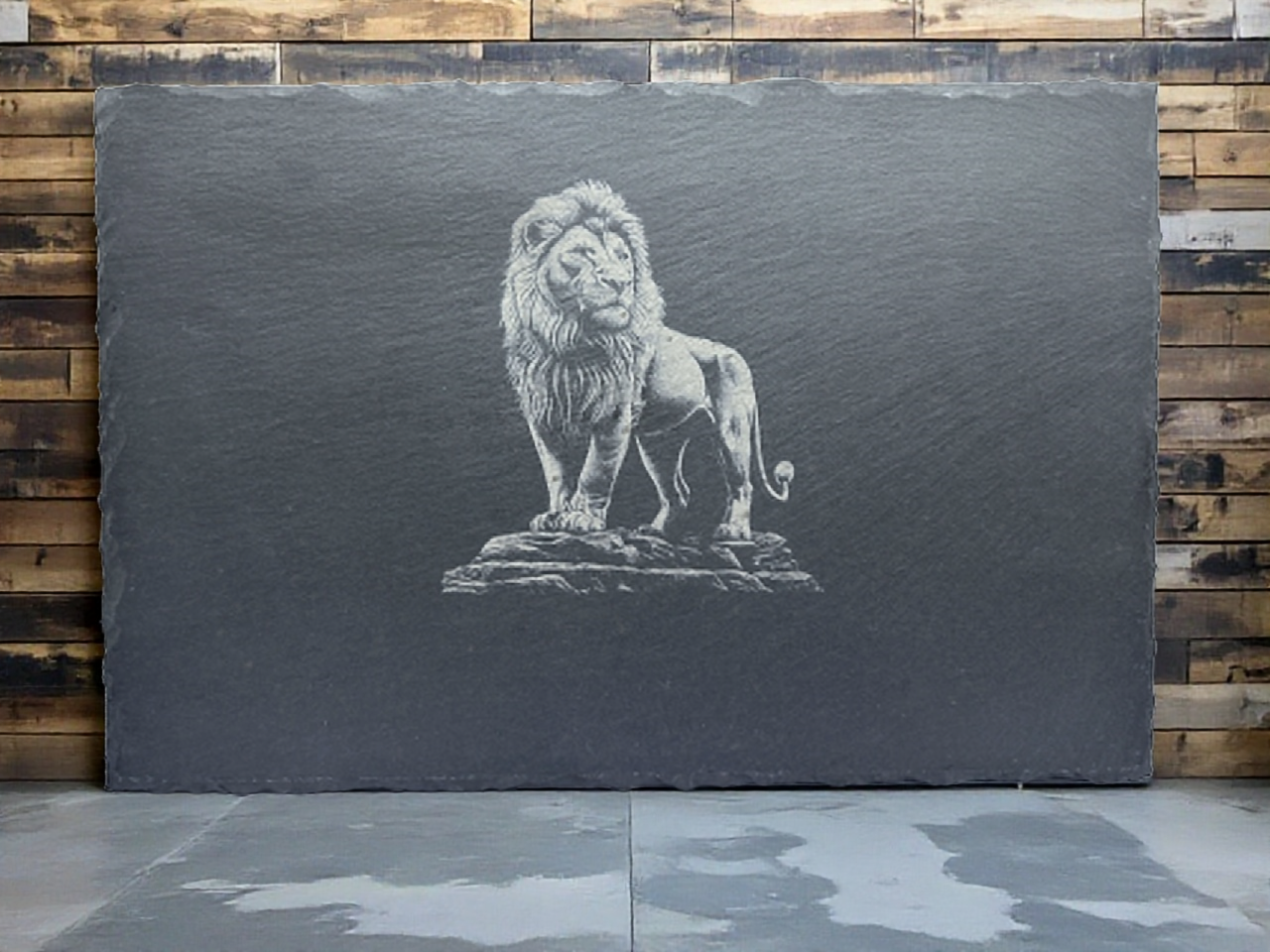 WAS Germany Naturschiefer-Servierplatte, mit Löwenmotiv, Schiefertafel personalisierbar mit Gravur 30 × 20 x 0,6 cm, für Käse, Sushi und Antipasti